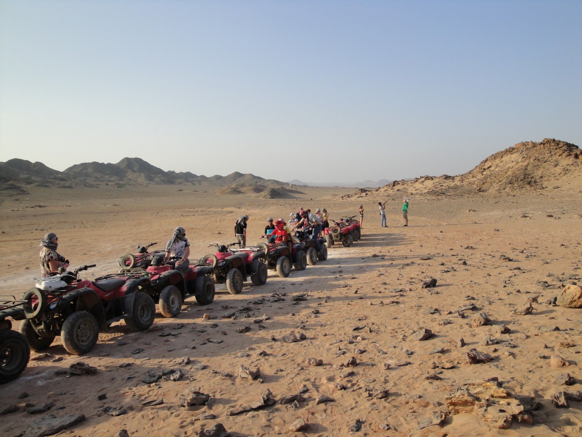 Abu Dabbab Moto Marine, to wyprawa, która łączy w sobie dwie wycieczki - morską i pustynną! Doskonały wybór dla wszystkich, którzy uwielbiają Saharę i Morze Czerwone a nie chcą tracić czasu podczas wakacji! Z hotelu wyjeżdżamy ok. 9.00 mikrobusem do ośrodka organizującego pustynne safari. Tam przesiadamy się na quady (motory czterokołowe dostępne dla osób powyżej 16 roku życia, młodsi jadą z osobą dorosłą na jednym motorze). Jedziemy około 45 min po pustyni w stronę najsłynniejszej w Marsa Alam zatoki czyli do Zatoki Abu Dabbab. Zatoka ta nazywana jest “Domem Żółwi”. Parkujemy quady tuż przed wejściem na plażę. Pobyt na plaży to około 2,5 godziny. Prawie 2 godziny nurkowania z opiekunem. Podziwiać można przepiękną rafę koralową,niezliczoną ilość różnych gatunków ryb, skrzydlic, mureny i inne a po wypłynięciu dalej od brzegu (tu potrzebna jest dobra umiejętność pływania) zobaczyć można żółwie a czasem nawet krowy morskie (diugonie). Po nurkowaniu przejazd na quadach do ośrodka safari i powrót do hotelu mikrobusem około 13.30. W czasie wycieczki Abu Dabbab moto marine towarzyszy nam angielskojęzyczny opiekun. Na plaży dodatkowo płatne atrakcje dla dzieci.